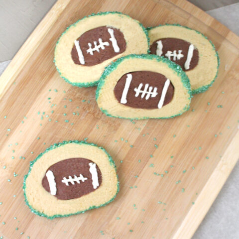 Made from scratch football sugar cookies. The dough can be made ahead and baked before the game day party.