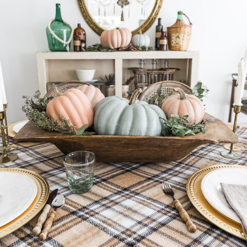Cozy Plaid Fall & Thanksgiving Tablescape {with Printable Place Cards}