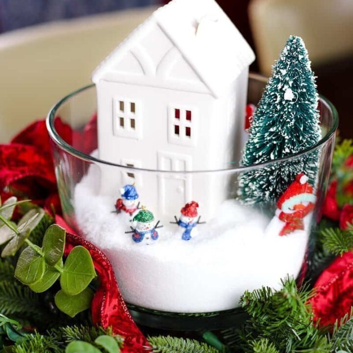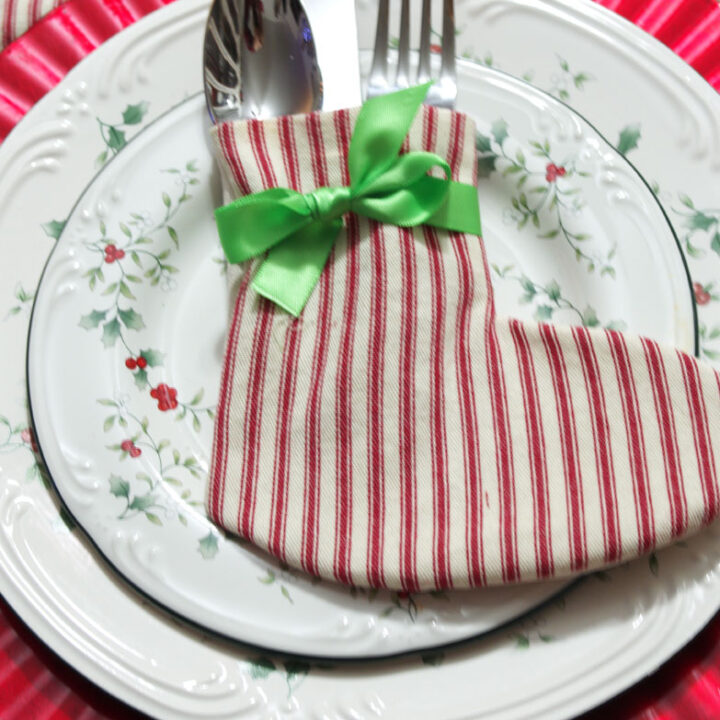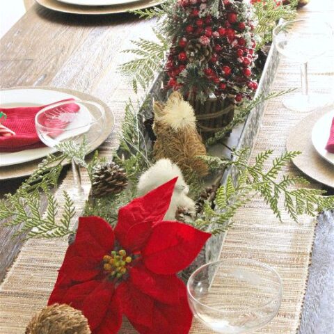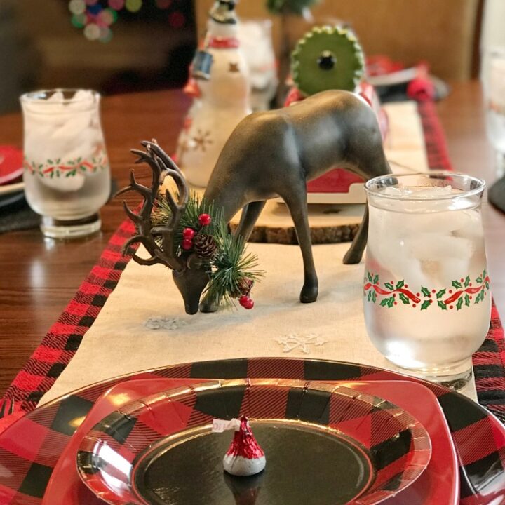 Did you see my Red and White Snowflake Christmas tree? It’s full and overflowing with lots of ornaments. It’s the total opposite of my dining table. My casual everyday Christmas table is very minimal and doesn’t have extra utensils, salad plates, bowls, extra cups, or any formal settings.