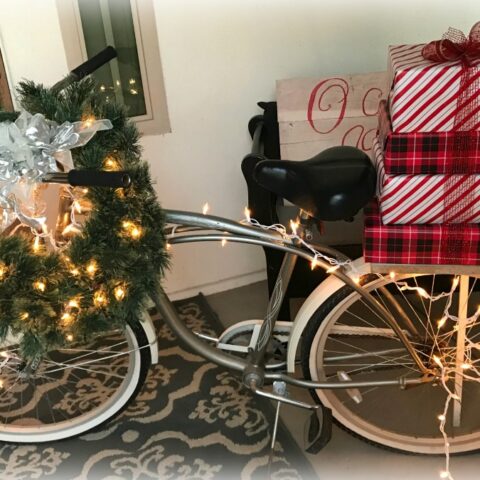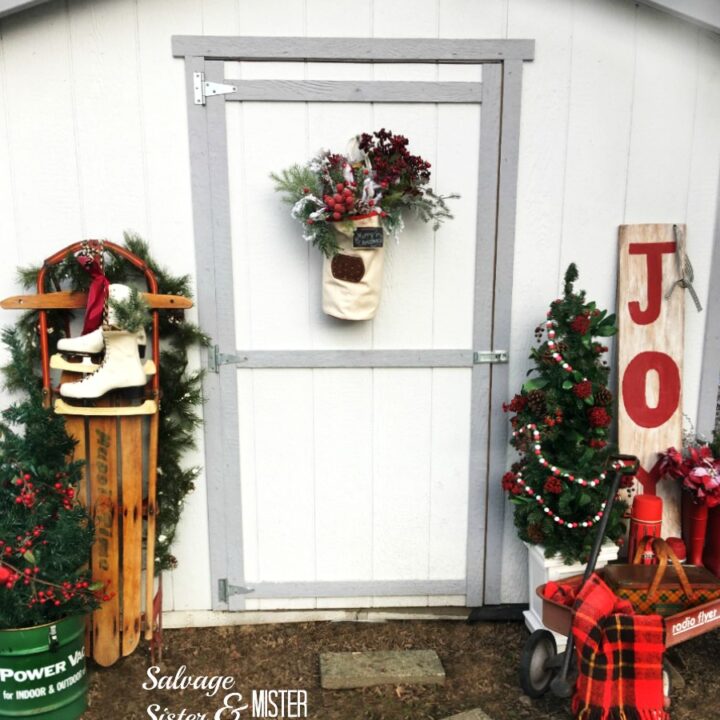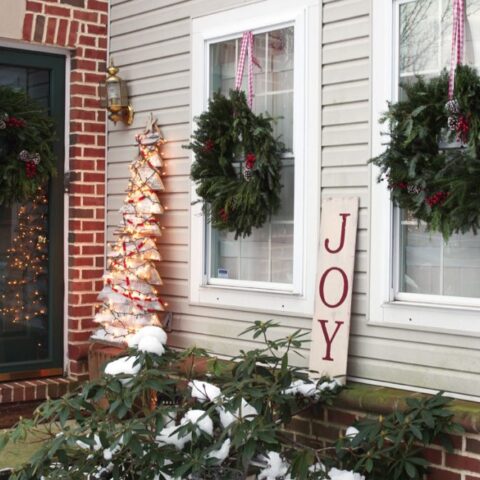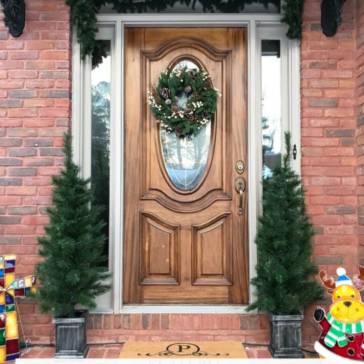 I really didn’t do any decorating outside this year, except for my snowman wreath and garland on my front door. I had some tinsel trees out front, but it’s been so crazy windy lately that those blew over and I decided to put them away. So instead of sharing my fairly bare front door, I’m sharing 15 Christmas Front Door Decor Ideas that you can create yourself.
