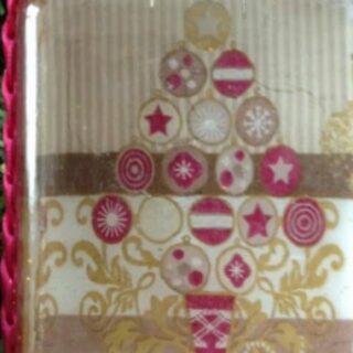 - Add craft glue to the back side of the cut paper and place onto the wood slice. Careful not to get glue onto the paper, so if there is seepage around the edges, wipe towards the outside of the ornament.