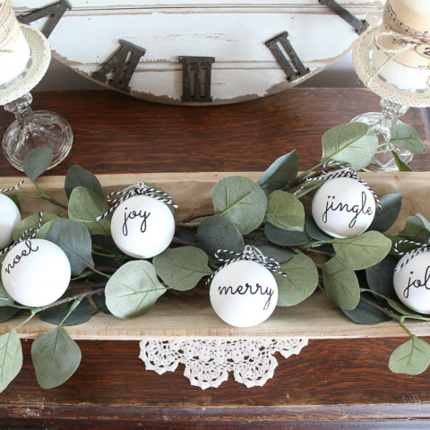 - Take a pine branch and trim the leaves to be about 3/8″ to 1/2″ long. I used a branch cut from the back side of one of my Christmas wreaths, but you can also buy pine branches at the craft store.