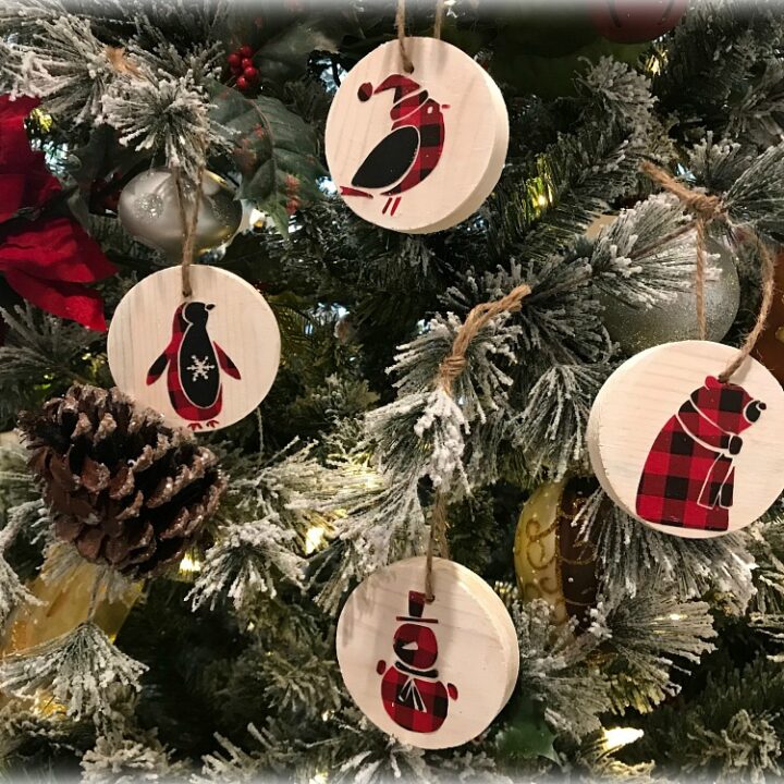 Lately, I’ve been on a birch wood slice ornament craze. I’ve already created a Snowman Wood Slice Ornament and Sparkly Wood Slice Ornament, so why not make one more?! This time, I made this DIY Mounted Plaid Deer Head Ornament, which was inspired by the rustic plaid trend.
