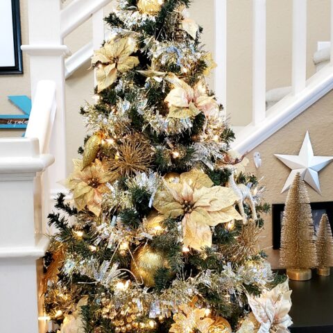 Hope you like the new Christmas tree color scheme. I would love to hear about your tree colors or tips on tree decorating. Also, stay tuned for more low to no budget holiday decorating ideas.