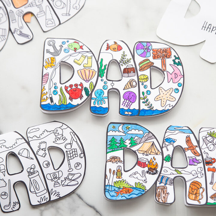 These fun 'DAD' cards come in six different themes: golf, fishing, camping, grilling, tools, and sports. The kids can choose the card theme to color and personalize the inside with their special message to dad. Requires an email sign-up.