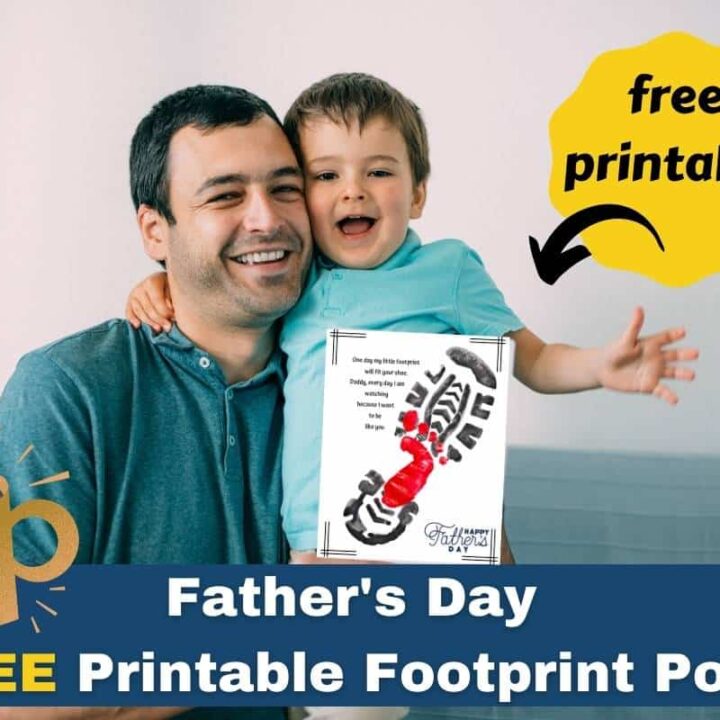 Super cute footprint template with Father's Day poem. Have your kids paint the bottoms of their feet and press them onto the template. Write a special message on the back and frame. Free download requires an email sign-up.