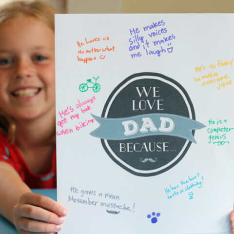 Have the kids write all the reasons they love dad on this free Father's Day printable. This printable can double as a card and a keepsake wall art.
