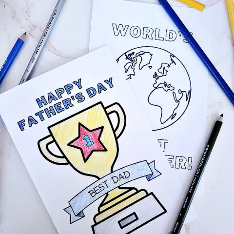 These printable coloring sheets can be made into cards or used as a fun activity for the kids to do with dad on Father's Day.