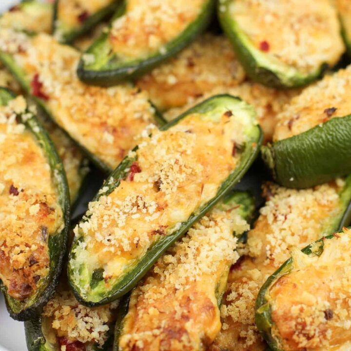 Jalapenos stuffed with a cheesy Cajun crab and bacon filling and topped with breadcrumbs is a fantastic party appetizer. Make the stuffing a day ahead for a quick and easy assembly. Can be made Keto-friendly by omitting the breadcrumbs.