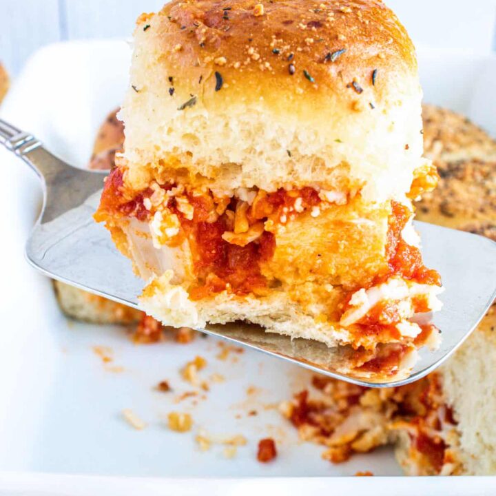 If you love chicken parmesan, this slider is chicken parm piled on a sweet bun. It makes a great mini portable sandwich.