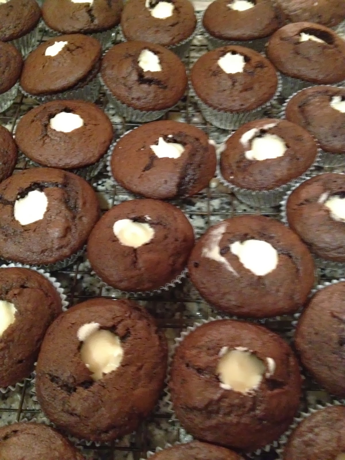 Are you still searching for an awesome cupcake? Well, look no further…seriously people, this one made me jump for joy. One, because it’s chocolate. Two, because it’s filled. Three, because it’s topped with real whipped hot chocolate frosting. Four, I had all the ingredients on hand…lol. Need I say more?