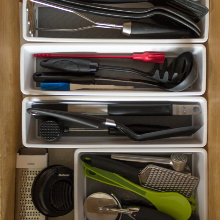 Once you commit to cleaning out a drawer, give yourself at least 2 hours per drawer. It may take you less time or more, but 2 hours to sort, clean, contain, and organize is a good start. This also gives you time to put away items that don’t belong in the drawer and to decorate/label any organization containers.