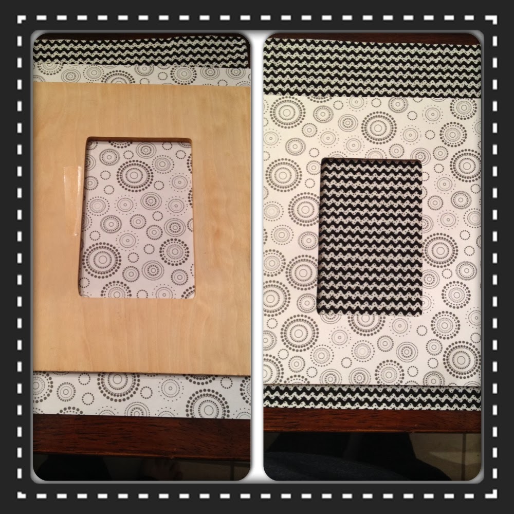Next, I took a frame I already had and spruced it up with some scrapbooking paper. Just trace the insert onto the scrapbooking paper and cut out.
