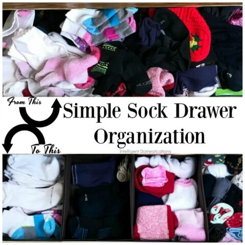For the top/shirt drawer, I’m showing my hubby’s drawer. It’s similar to what my drawer looked like, but his is fuller and messier. He likes to stack his shirts on top of each other, but like I mentioned in my vertical fabric storage post, you can’t find things when they are stacked on top of each other. As you can see, it looks like he has to rummage through his shirts to find anything.